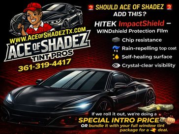 At Ace of Shadez Tint Pros, we now offer HITEK ImpactShield Windshield Protection Film, an advanced protective layer designed to help prevent rock chips and extend the life of your windshield.